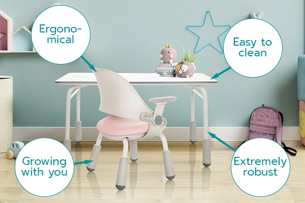- Grows with the child thanks to height-adjustable table legs