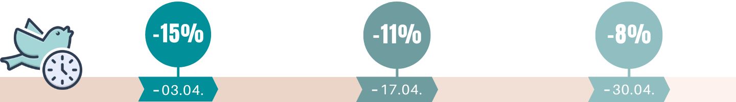 Early Bird discount: It pays to be quick, the discount* is decreasing!