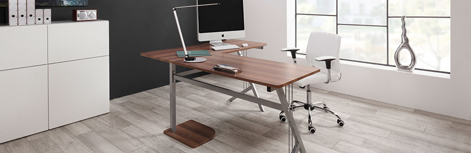 Do you want a spacious workplace? Corner desks make optimal use of the space in the office or study and, integrated into the corner, create the maximum space possible using the minimum amount of space. Our range includes corner desks in many shapes and sizes and different colours and materials that perfectly cover your individual needs. Thanks to the practical L-shape, you can make optimal use of the often forgotten spots in corners, which would not be used with a classic desk. Whether in the office or the small office corner in your living room, our corner desks optimise every workplace in no time.