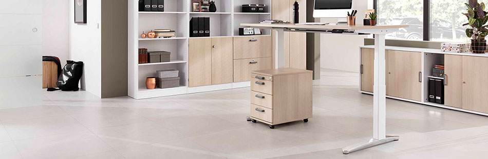 More and more people have been working at standing workstations in recent years. This partially compensates for the known disadvantages of long periods of sitting at work. We now offer a large range of height-adjustable standing desks, including standing desks that are adjust electrically.